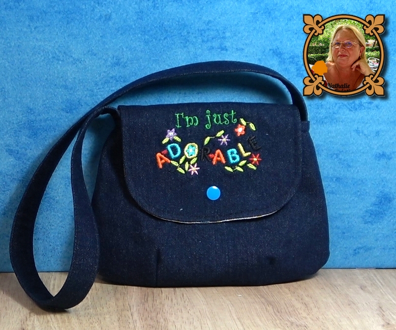 Sac unique enfant fait main. Matière de confection : jeans et coton avec motifs de broderie. Dimension 22x18cm. Anse 68cm.